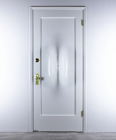 - Reclaimed door, fiberglass, resin, hardware, paint